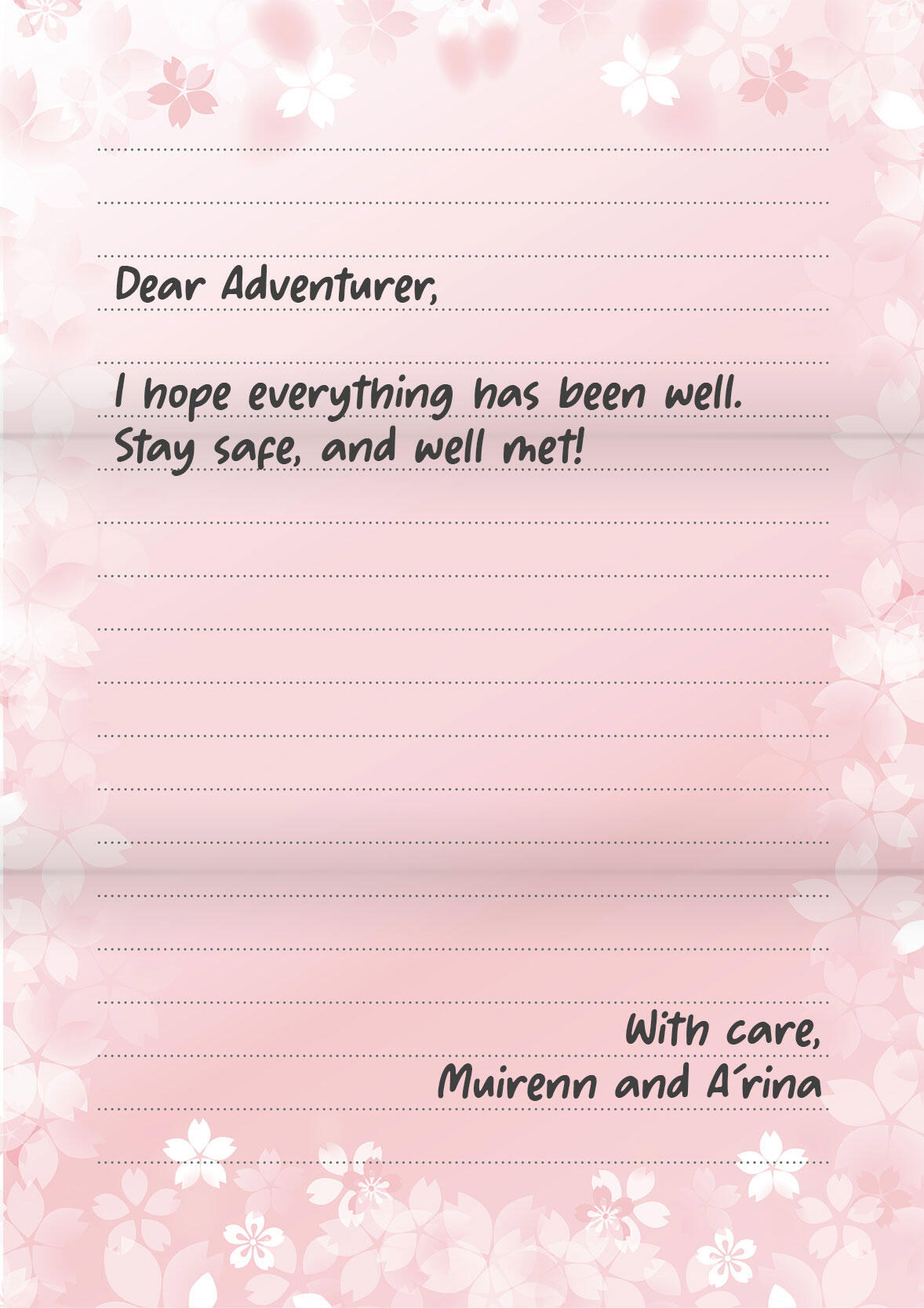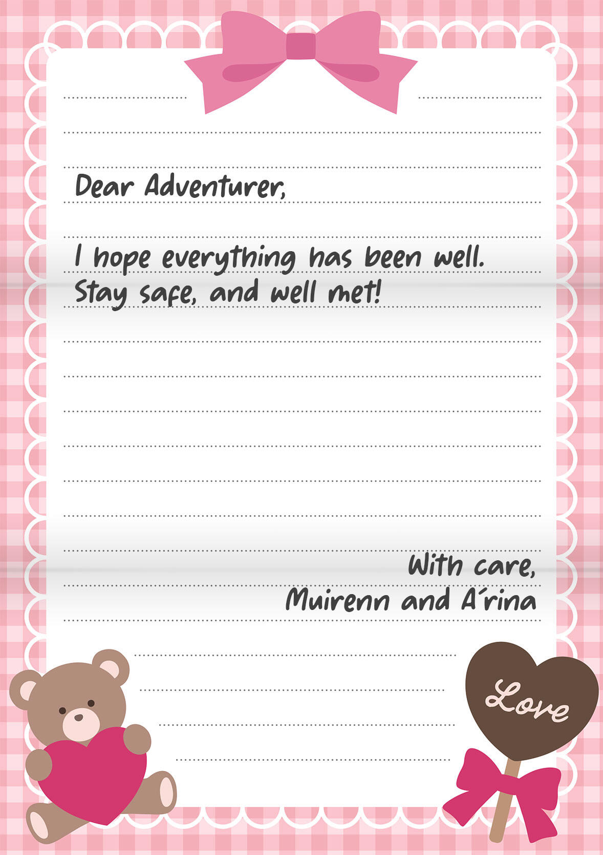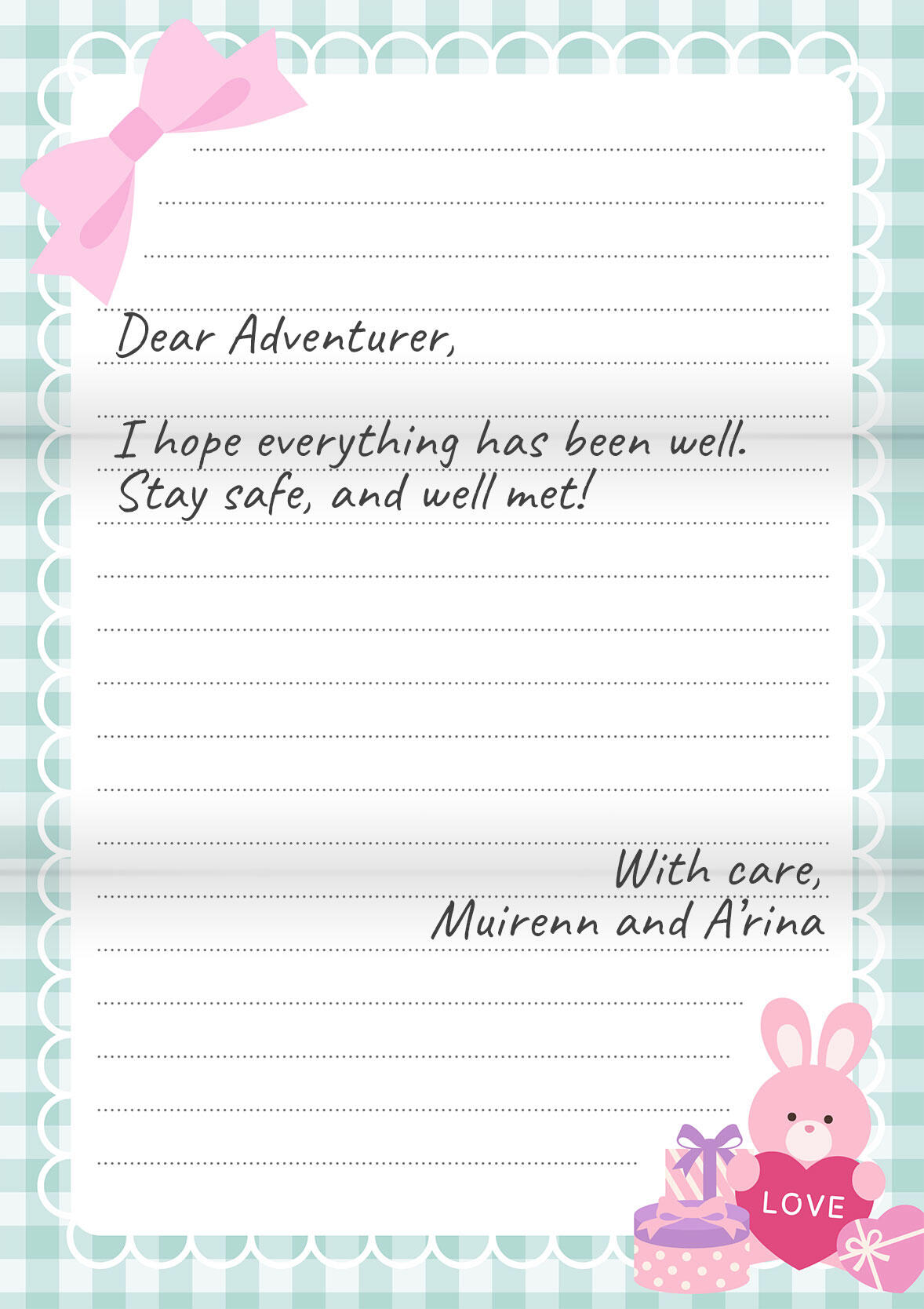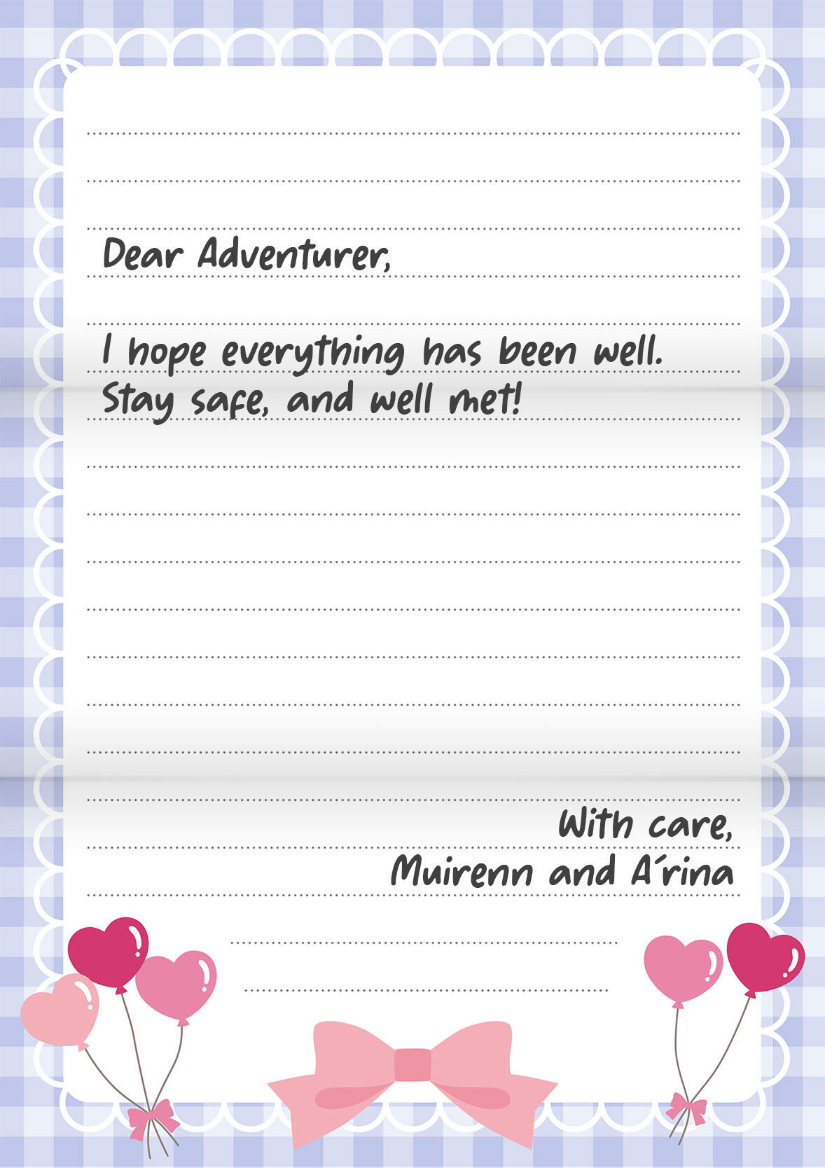 PREMIUM LETTER PACKAGE FEE - 150,000G (Your choice of our pre-designed stationery, handwritten or typewritten letter, and delivery to recipient)